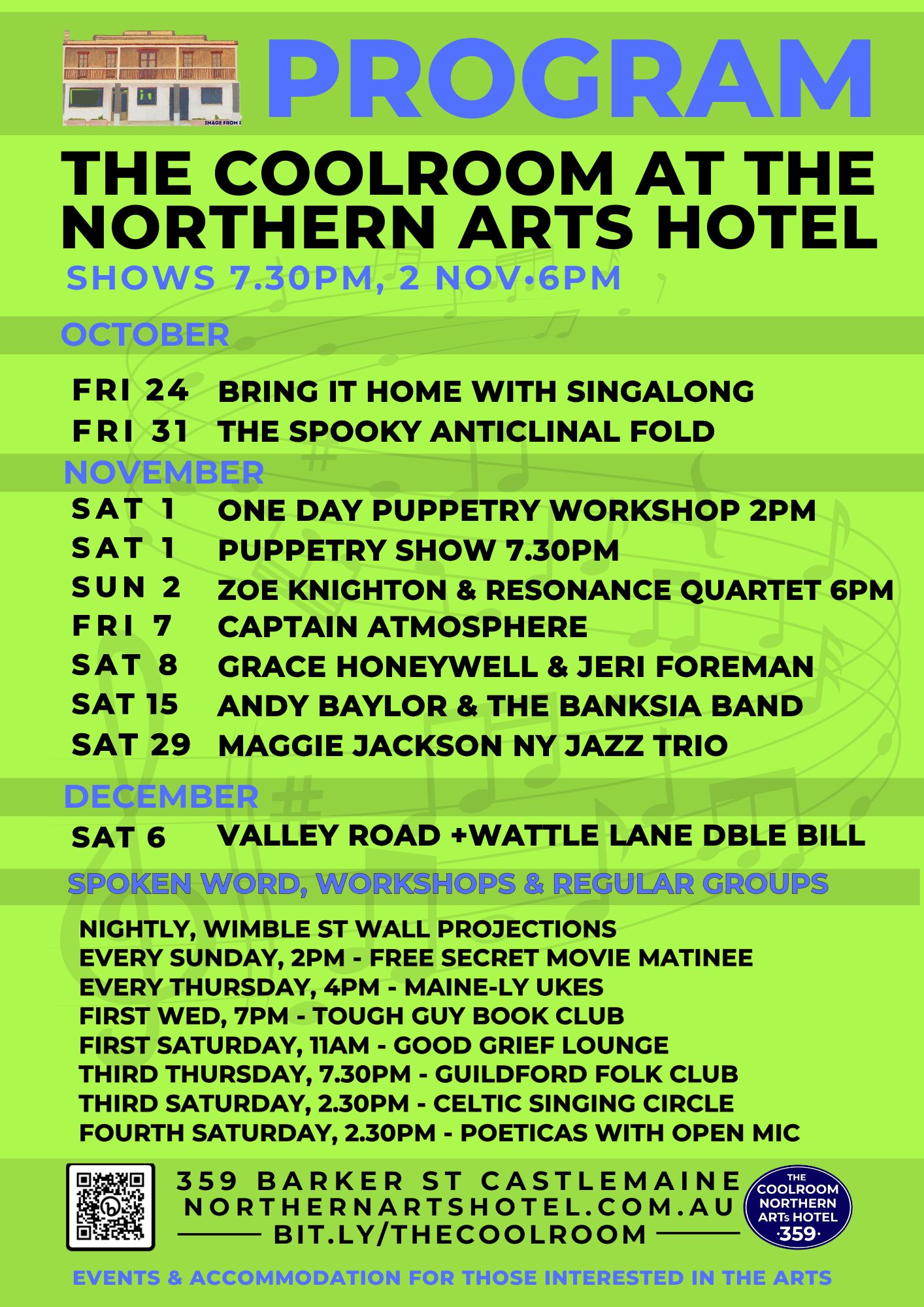WHAT’S ON IN THE COOLROOM AT NORTHERN ARTS HOTEL