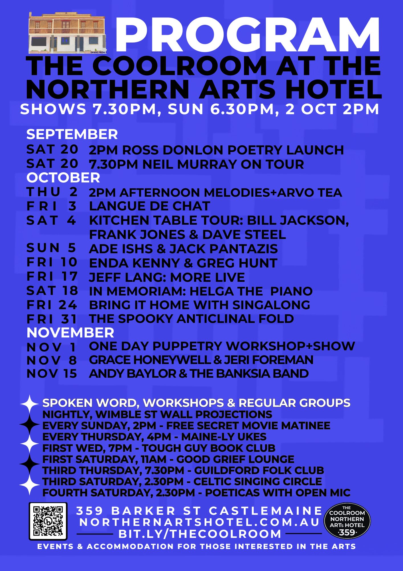 Bookings for events at The Coolroom can be made through Humanitix: Booking link here